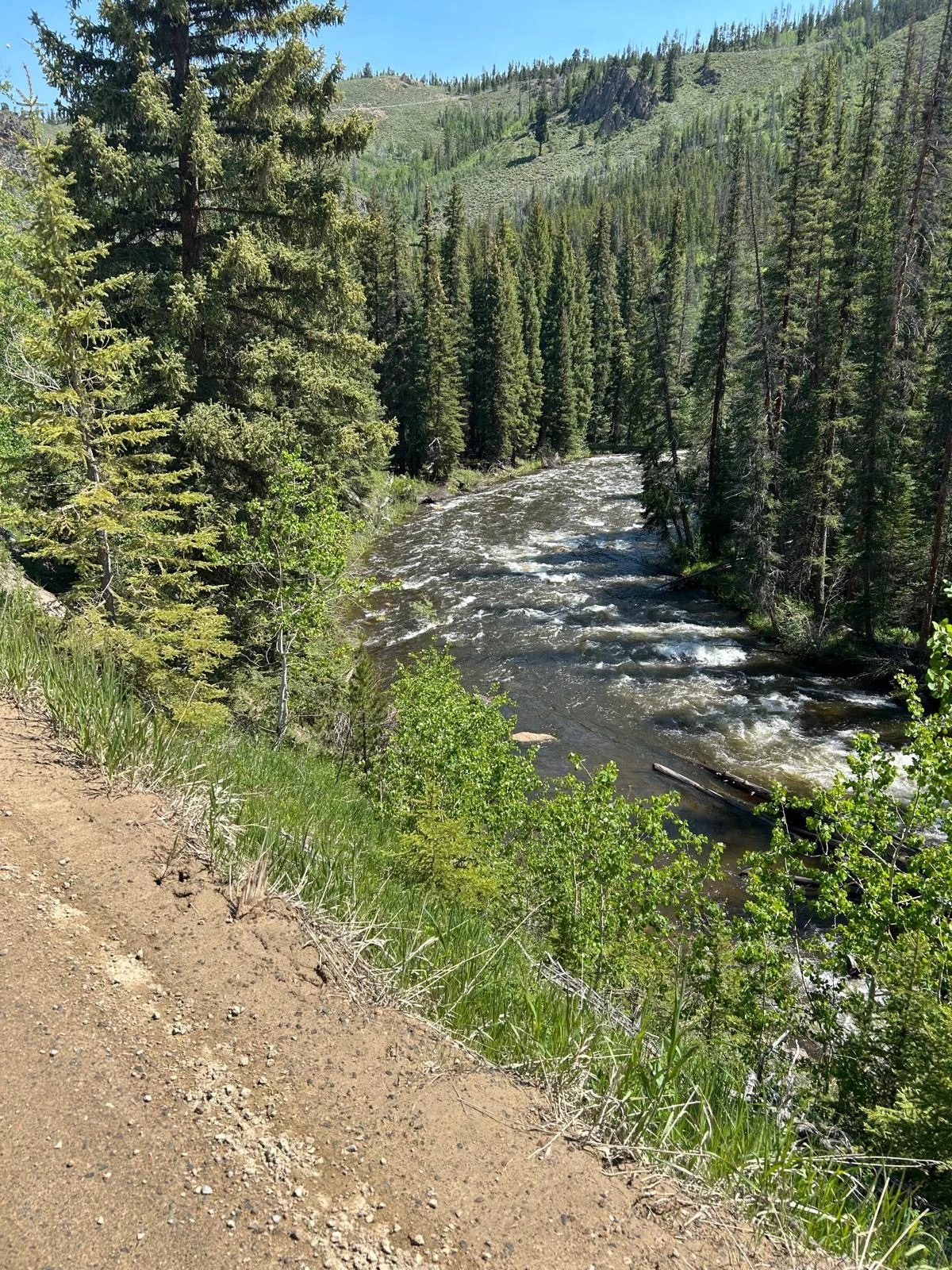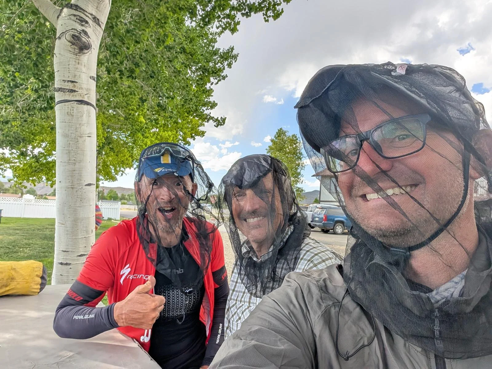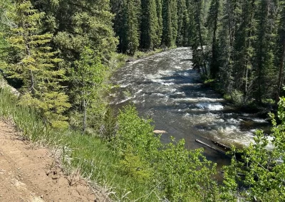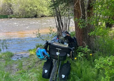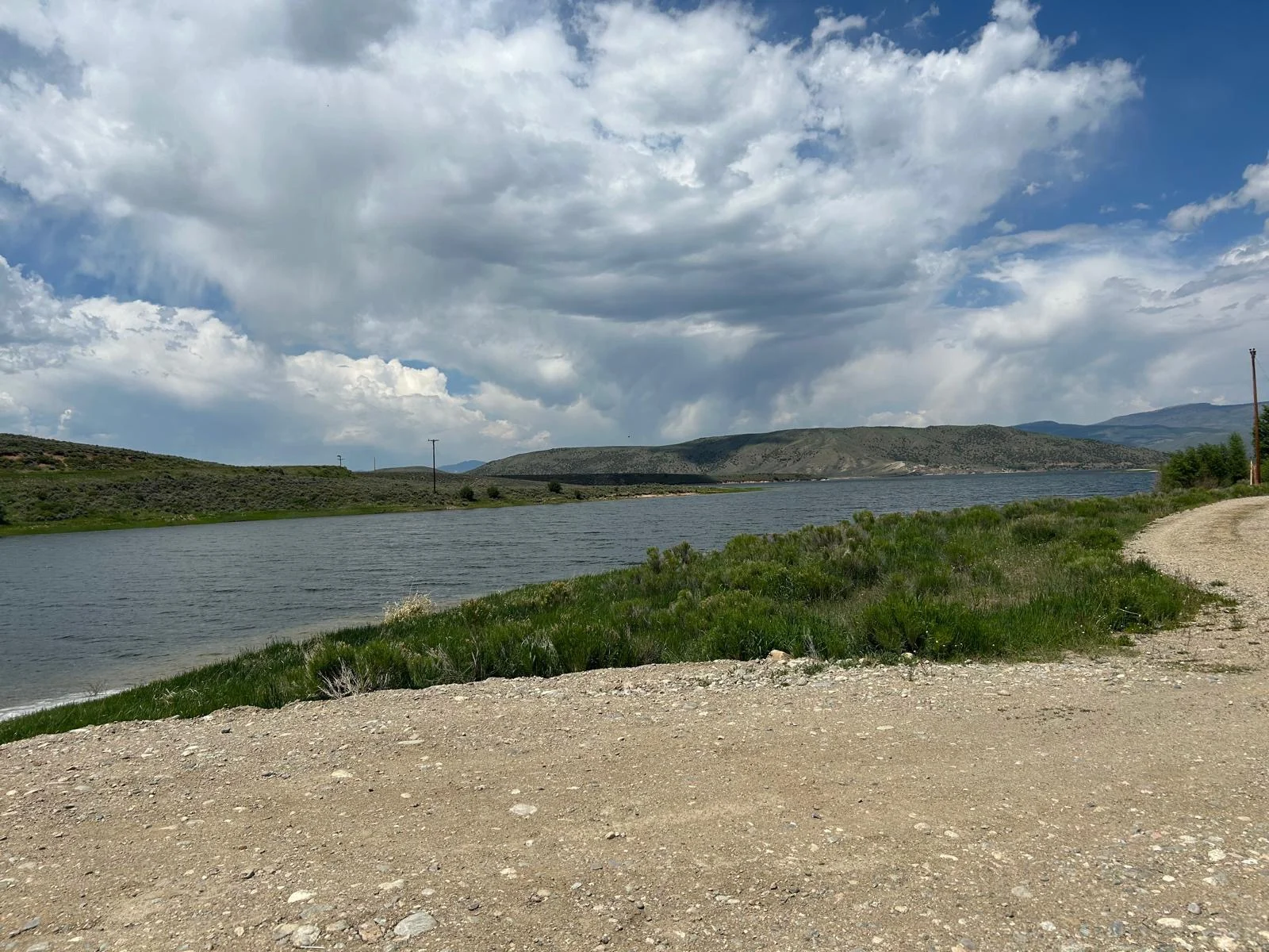 Friday 13th 🤣. The three Amigos headed out of Silverthorne at around 8, with a campsite marked at 37miles along the shores of a huge reservoir. The first section was on a bike trail and then road for around 13 miles, which we ploughed through, all feeling better for the rest. Then the fun started with a 5 mile climb gaining 1500m in altitude. It was paved, so that was a blessing. I was feeling Perry good so found my rhythm and went on ahead, cresting the climb about 20 minutes ahead of the lads. It was damn hot so a rest was needed at the top before the descent. We headed down a sublime descent past a huge dam and mine before the tarmac turned to gravel. But wonderfully it was pretty compact so we were able to hit a good speed. Around 11 we needed food so found a camp site on the river and smashed through some food. Jake decided he’d take the plunge and went in to the freezing water….i was shivering thinking of it! We got going again but shortly after met a ‘trail angel’ with water and snacks out for us. He wanted us to stay camping at his place but a quick look around signalled to us it wasn’t a good option! We headed off to our identified camp site which was 11 miles away! We had done the bulk of the climbing so it was a very easy 11 to the site which was right on the shores of a huge reservoir. We arrived around 2:30 and sat chatting for a while trying to work out where to camp as it was very exposed to the wind. After 30 minutes we decided we’d try get to the next town, Kremmling, 14 miles further on. Whilst it was undulating and on gravel it was still fast riding. After 56 miles we rolled in to Kremmling. It was an RV park which allowed camping, but more importantly it had showers!! And toilets! And mosquitoes! Feck they were brutal.
