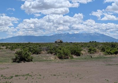 Eventually we got going around 11, with the plan of camping at a UFO ‘platform’ gig around 25 miles away. With that in mind we just poddled along with no sense of urgency, whiling away the miles with periodic stops at scattered convenience stores. We arrived at the UFO place at around 1 and we both hated it right at the start. It was basically a junk yard of whacky UFO things and the camp site was exposed with no shelter…and they wanted $20! So we searched on line for the next campsite which was 30 miles up the road towards Salida. So we said ‘let’s go’…..we had a tailwind so it was a two hour gig around worse. Oh dear…..I do wonder when we will ever learn that plans on the Divide are as useless as a chocolate teapot. Not one mile in and out of nowhere the wind spun 180 and bang….for 15 miles an hour to 5 in less than 100 metres! And I got another bloody puncture! And…..it started to pour down with the mountains in front simply disappearing behind angry black thunderclouds. We had seen this movie before! Jake was really struggling with the wind so eventually when we came across a Family Dollar store (like an Aldi) we rode in and crashed for a bit. I fixed my puncture….again…and Jake went off to scout out the tiny hamlet we were in- Moffet.